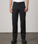 Traditional waistband with belt loops. Concealed zip fly with button over. Two side swing pockets. One rear open pocket. WRAP Certified Production.